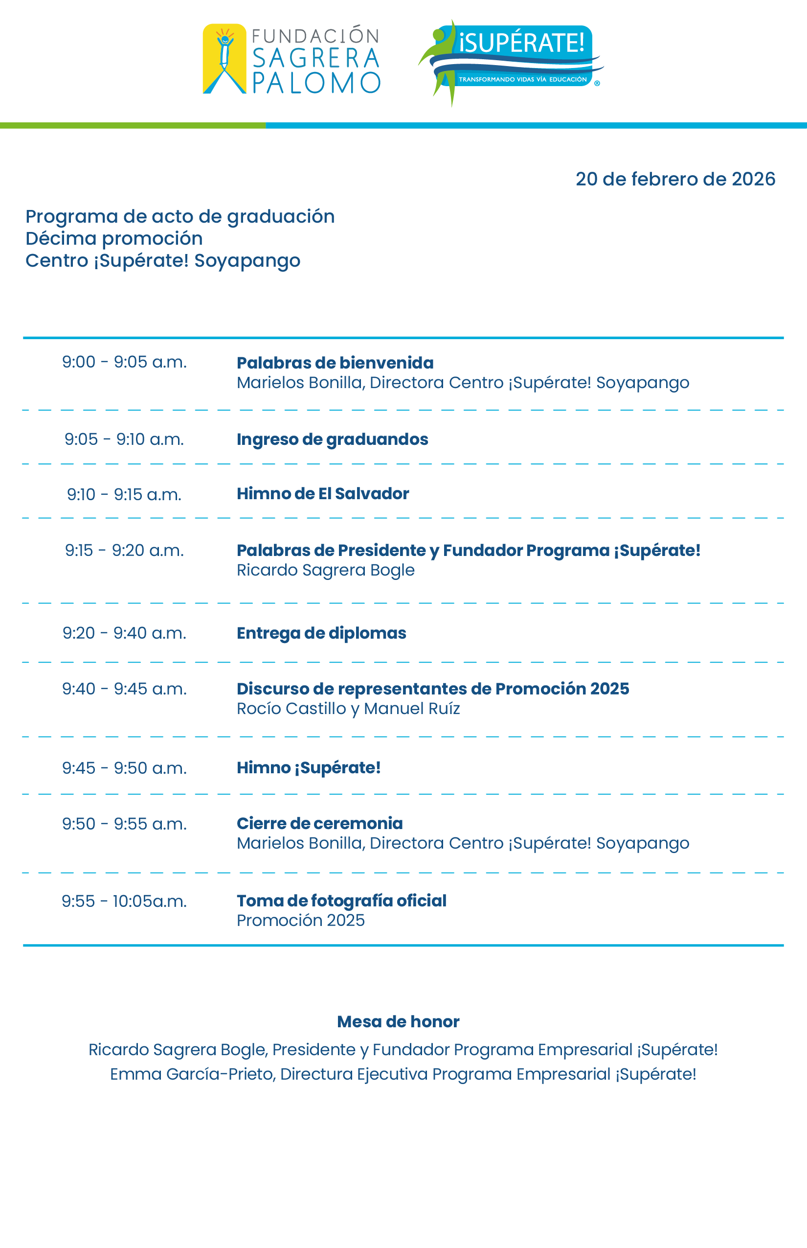 Programa de acto de graduación Centro ¡Supérate! Fundación Sus Buenos Vecinos